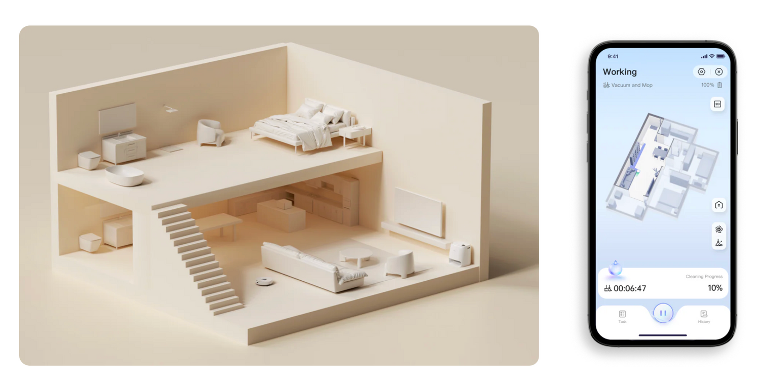 Le Freo X Ultra mappe automatiquement votre domicile complet, même sur plusieurs niveaux. Grâce à sa technologie laser tri-précision, il crée une carte 3D détaillée de chaque étage et mémorise parfaitement la disposition de vos pièces pour un nettoyage optimal à chaque passage.