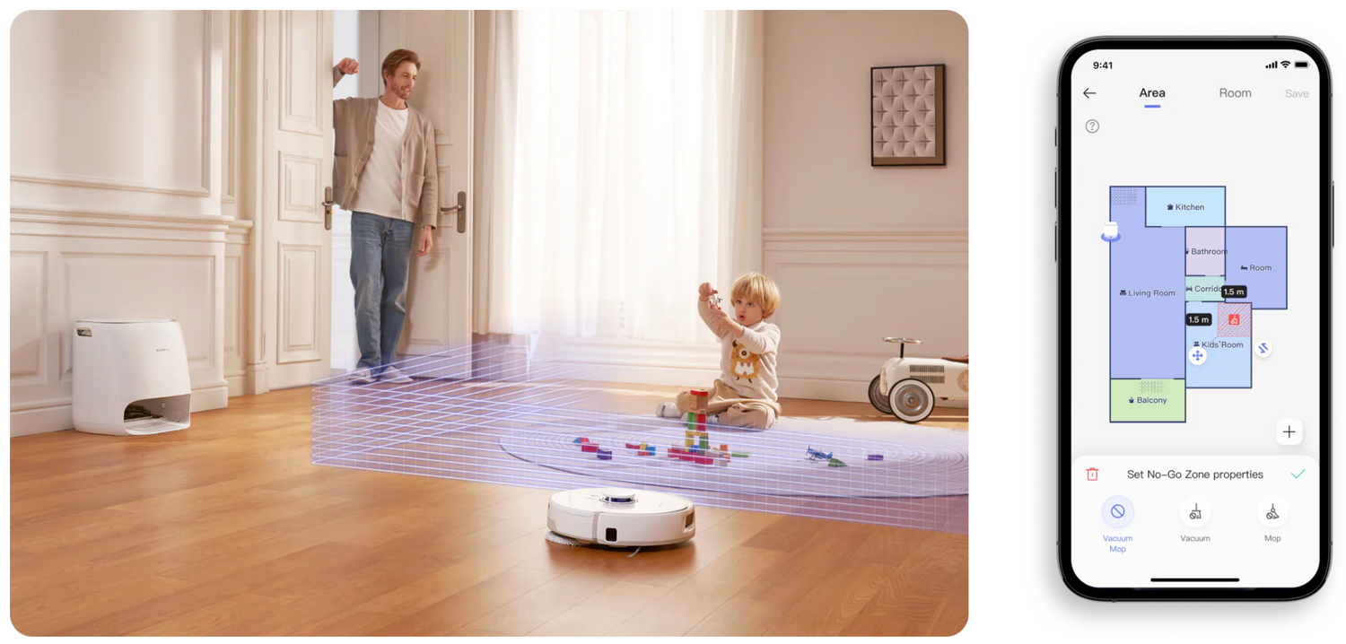Créez facilement des zones interdites pour protéger les endroits sensibles : aire de jeu des enfants, gamelles d'animaux, objets fragiles. L'application intuitive vous permet de tracer des limites virtuelles d'un simple glissement de doigt, garantissant que le robot respecte vos espaces privés.